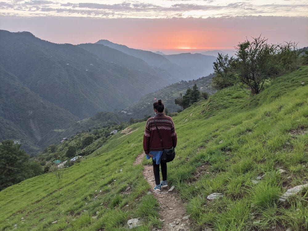 So, well, yesterday, I made a schedule I want to stick to (get up at 5/5:15, ten-fifteen minute meditation, work until evening with a lunch break, and so on.) I stuck to it for the most part, until the host family members came to our house, and then I chatted with them. In the evening the hill beckoned me to it. The women of the family were going downhill to cut grass for their cows, and I descended behind them. Squatting beside them, I asked millions of questions about grass and trees. Then I ran up the hill on my own exploration and sat under the trees with my eyes closed, feeling the wild wind at its full force. In front of me was the sun setting behind clouds lining them with silver. By the time I returned home I was so happy I made semolina sweet (halwa we call it locally) and gave some to the family, to S, and ate two bowls full myself. Giggling, I got back to the schedule.