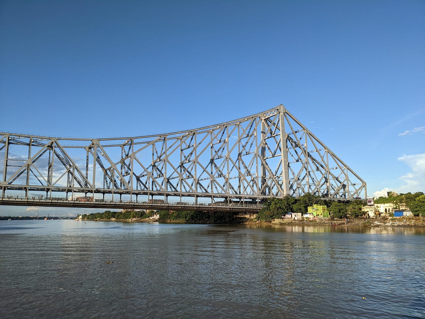 I lost track of time while reading about Howrah Bridge, and so I want to share its Wikipedia page here. Not that you can’t find it on your own.