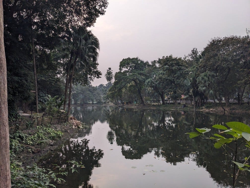 Here’s a brief summary of the first part: I am still in Calcutta (on the east coast of India), and I had a groggy start to the day as I couldn’t sleep well. I exercise, finish a few house chores, work, eat lunch, thinking of my partner, Sagar, who is visiting his parents, and set out on an adventure. I take a bus and a metro, and I walk to arrive in Eden Gardens, the cricket stadium of Calcutta. It was once a huge park, and it still houses the Eden Gardens public park. I am inside the park, looking at the trees, walking by the lakes, and watching the fish frolic.