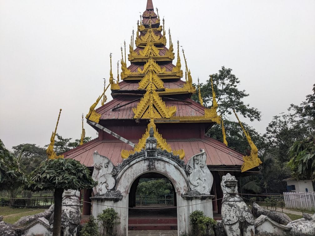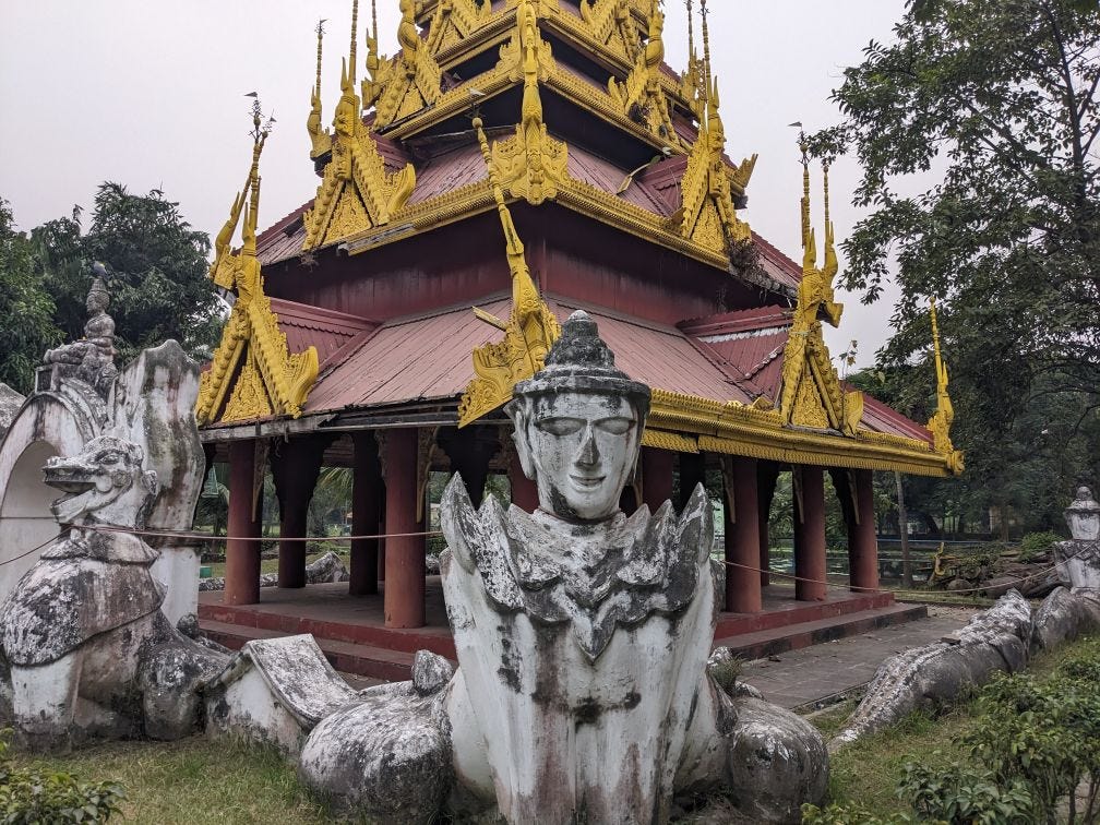 Now I was suddenly at a shrine. Yes, definitely. But what kind of shrine? A Shinto shrine, a Japanese shrine, as Juju (my friend) had told me? No, that was someplace else. This shrine had a tiered roof, red in color with intricate gold borders. It was guarded on four corners by semi-human and semi-animal figures common to Asian shrines. Until I read a Calcutta boy’s blog* on the Eden Gardens shrine, I didn’t know this was a Buddhist pagoda made in Burma in 1852 and shifted to Calcutta by the orders of Mr. Dalhousie in 1854. The pagoda was dismantled and brought on a ship on the river Hooghly, on whose bank Calcutta sits.